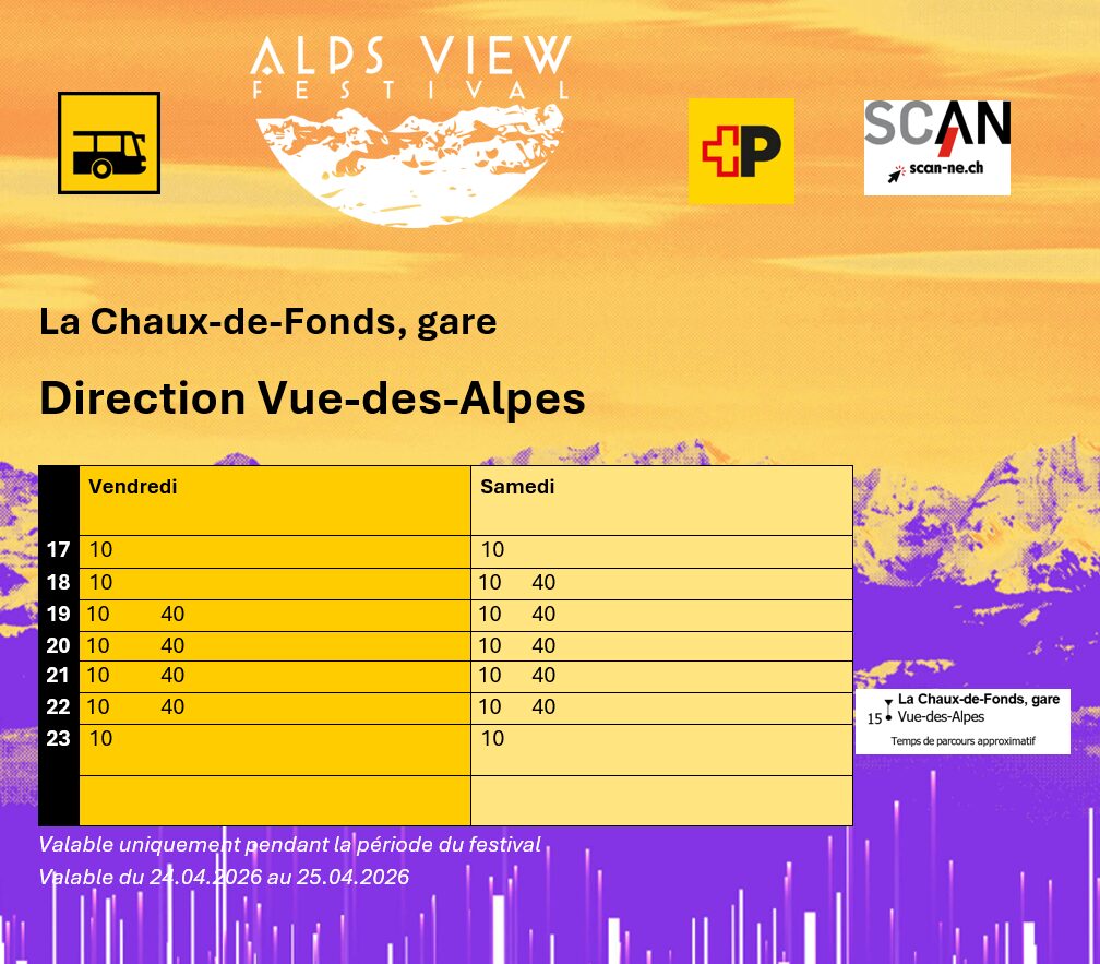 Prochainement seront publiés les horaires des navettes gratuites au départ uniquement de la gare de La Chaux-de-Fonds.