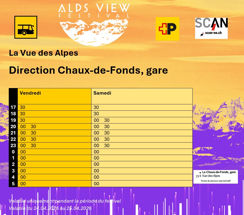 Pour le retour, les navettes circulent en direction de la gare de La Chaux-de-Fonds ET Neuchâtel