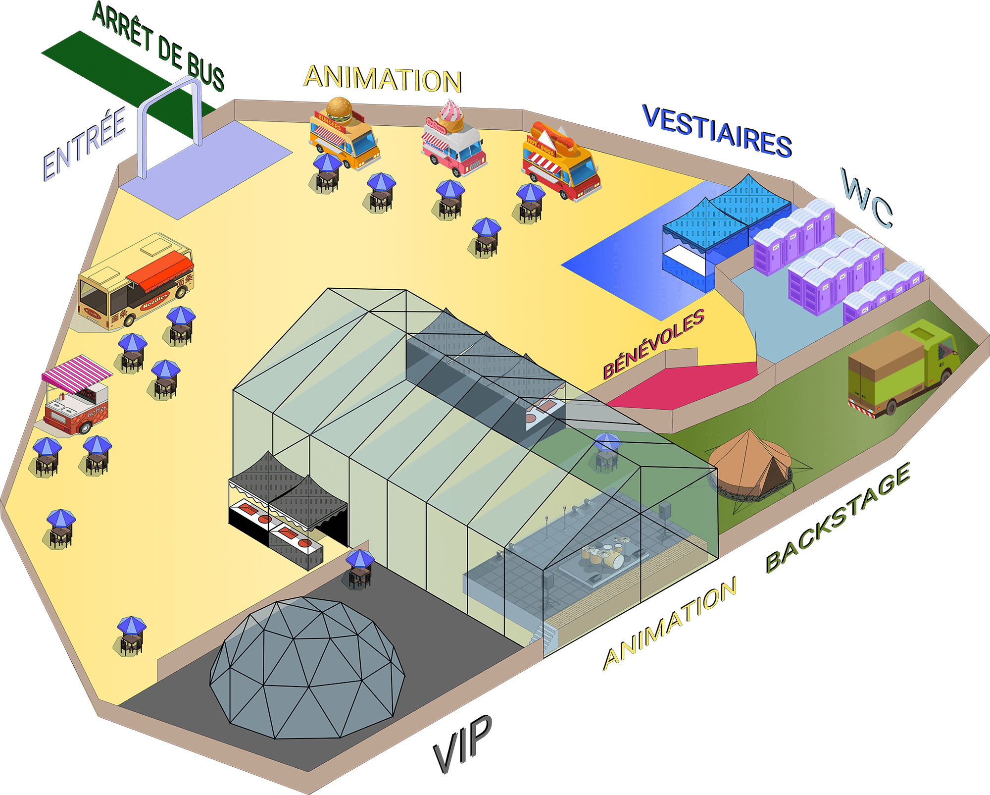 La nourriture et les boissons de l’extérieur ne sont pas autorisés à l’intérieur du festival. Des bars et des Food-trucks seront sur place.